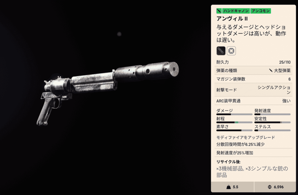 - アンヴィル(レア度:アンコモン / 弾薬:大型)